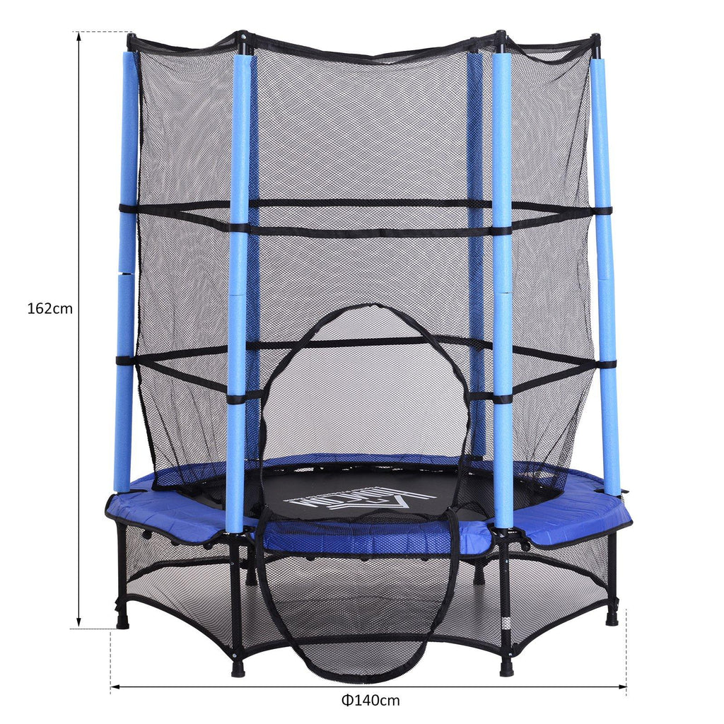 Trampolino Tappeto Elastico per Bambini Ø140x162 cm con Rete di Sicurezza Nero e Blu