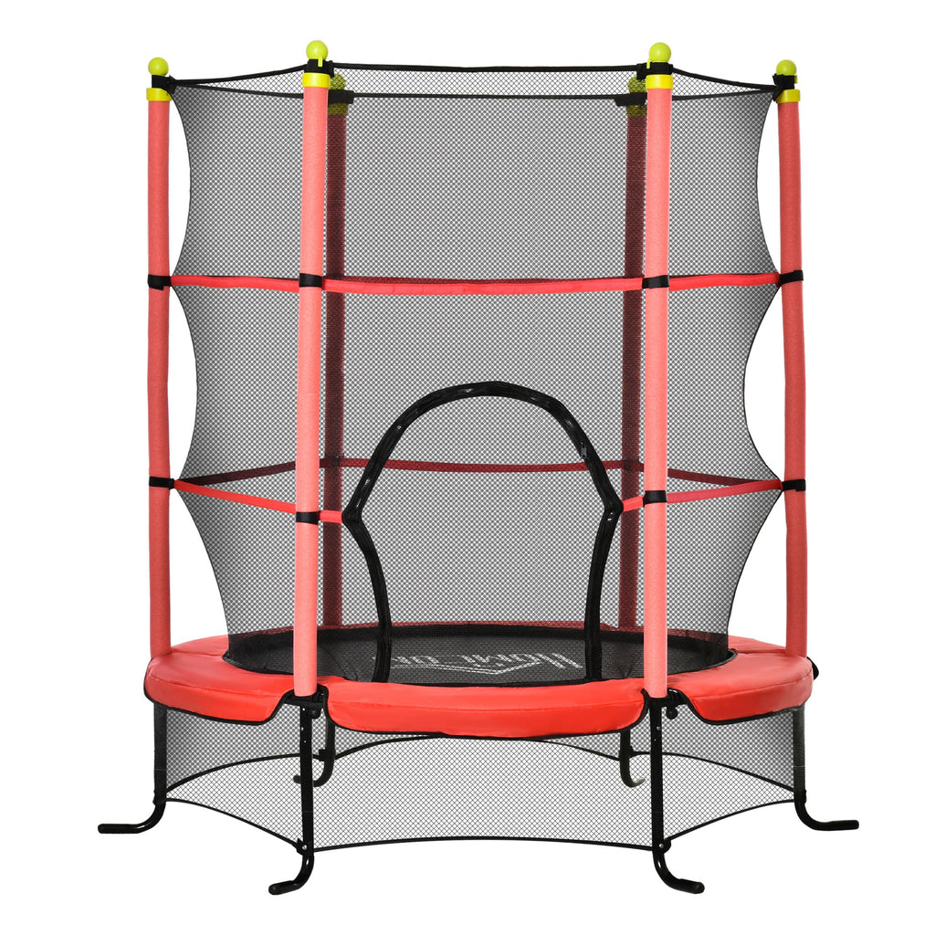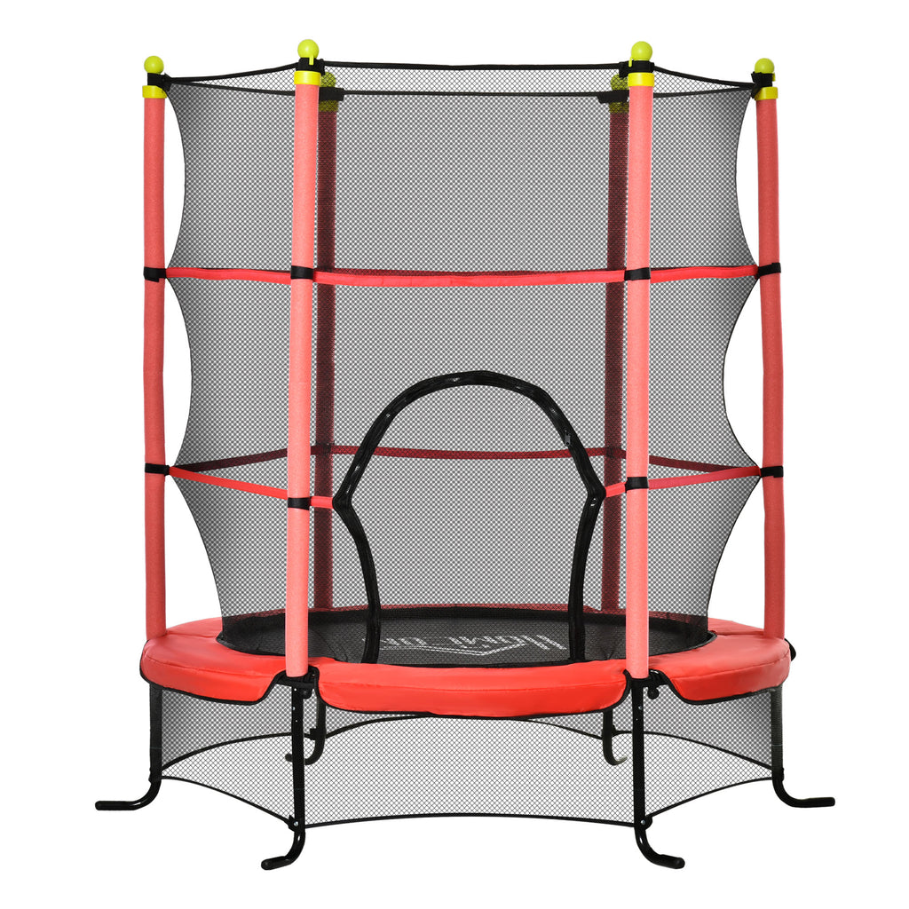 Trampolino Tappeto Elastico per Bambini Ø163x163 cm con Rete di Sicurezza e Corde Elastiche Rosso