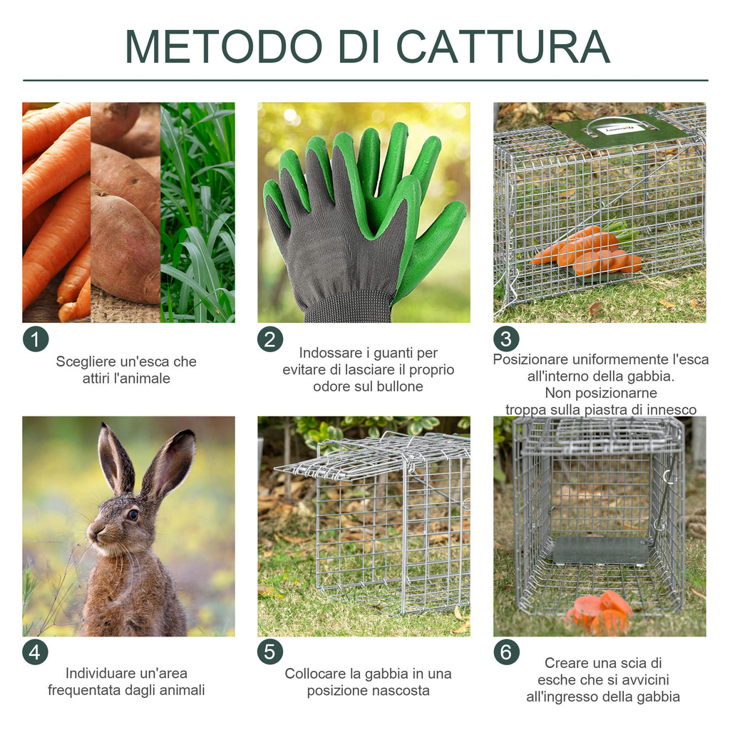 - GABBIA SICURA: Questa gabbia per animali consente di prendere in totale sicurezza gli animali selvatici senza fargli male, così potrai liberarli in zone più adatte a loro. Ideale per conigli, furetti, ecc