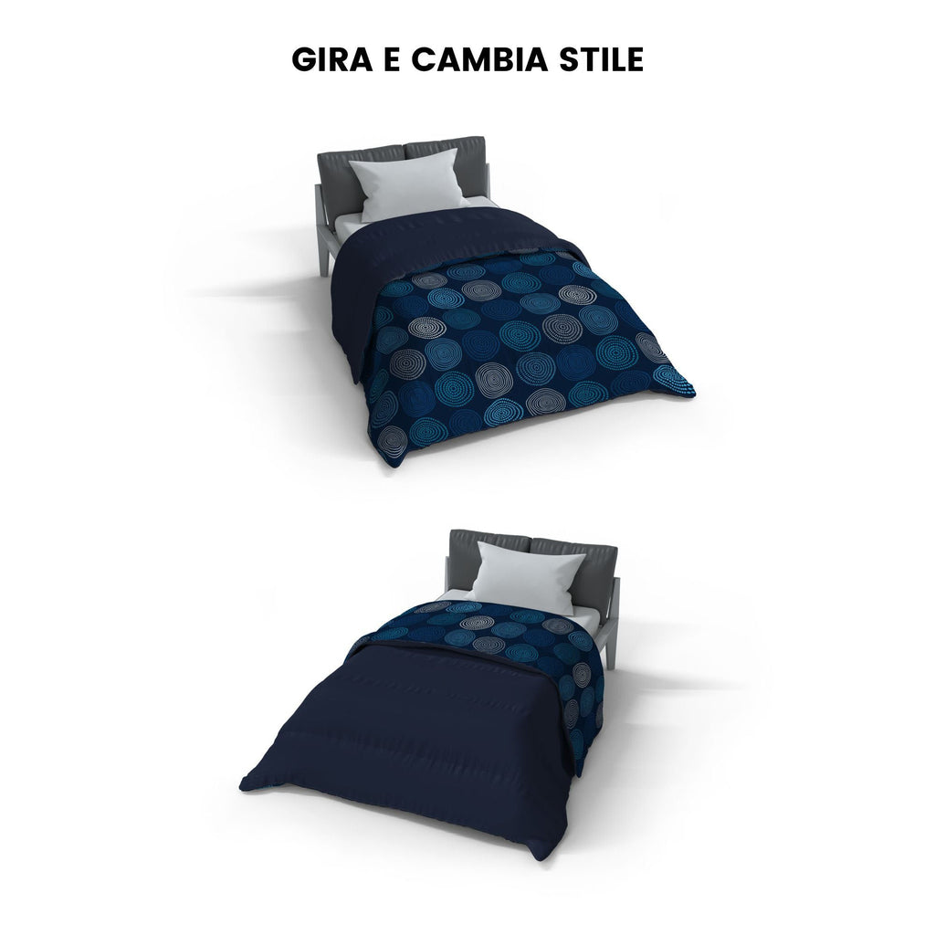 Trapunta invernale stampata bicolore, doubleface. Imbottitura 300 grammi, Made in Italy con certificazione Oeko tex che garantisce il rispetto per la natura e la totale assenza di sostanze nocive durante l'intero processo produttivo.
