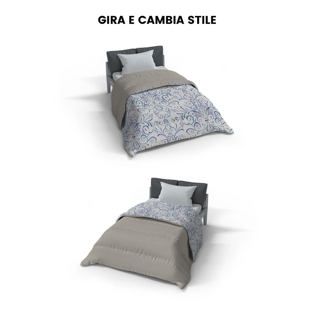 Trapunta invernale stampata bicolore, doubleface. Imbottitura 300 grammi, Made in Italy con certificazione Oeko tex che garantisce il rispetto per la natura e la totale assenza di sostanze nocive durante l'intero processo produttivo.