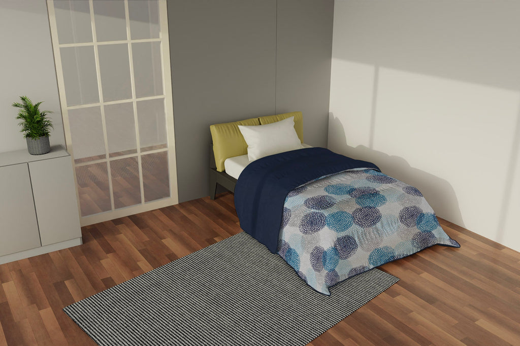 Trapunta Invernale 1 Piazza e Mezzo Stampata in Microfibra 300gr Double Face Soffioni Blu
