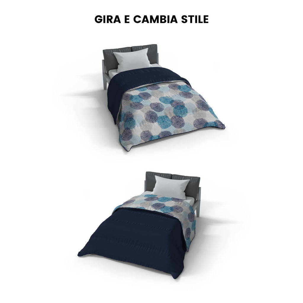 Trapunta Invernale Stampata in Microfibra 300gr Doubleface Soffioni Blu