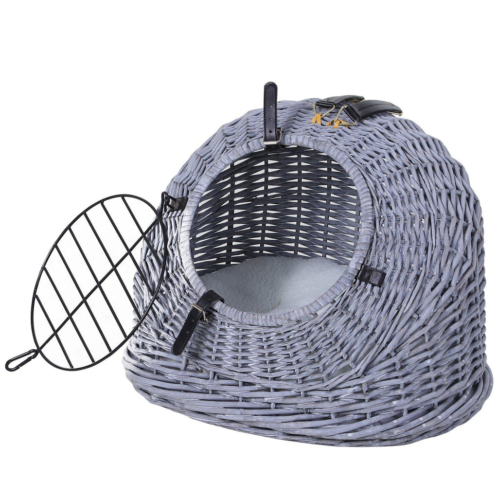 Trasportino in Vimini per Gatti 42x35x37 cm con Cuscino Grigio