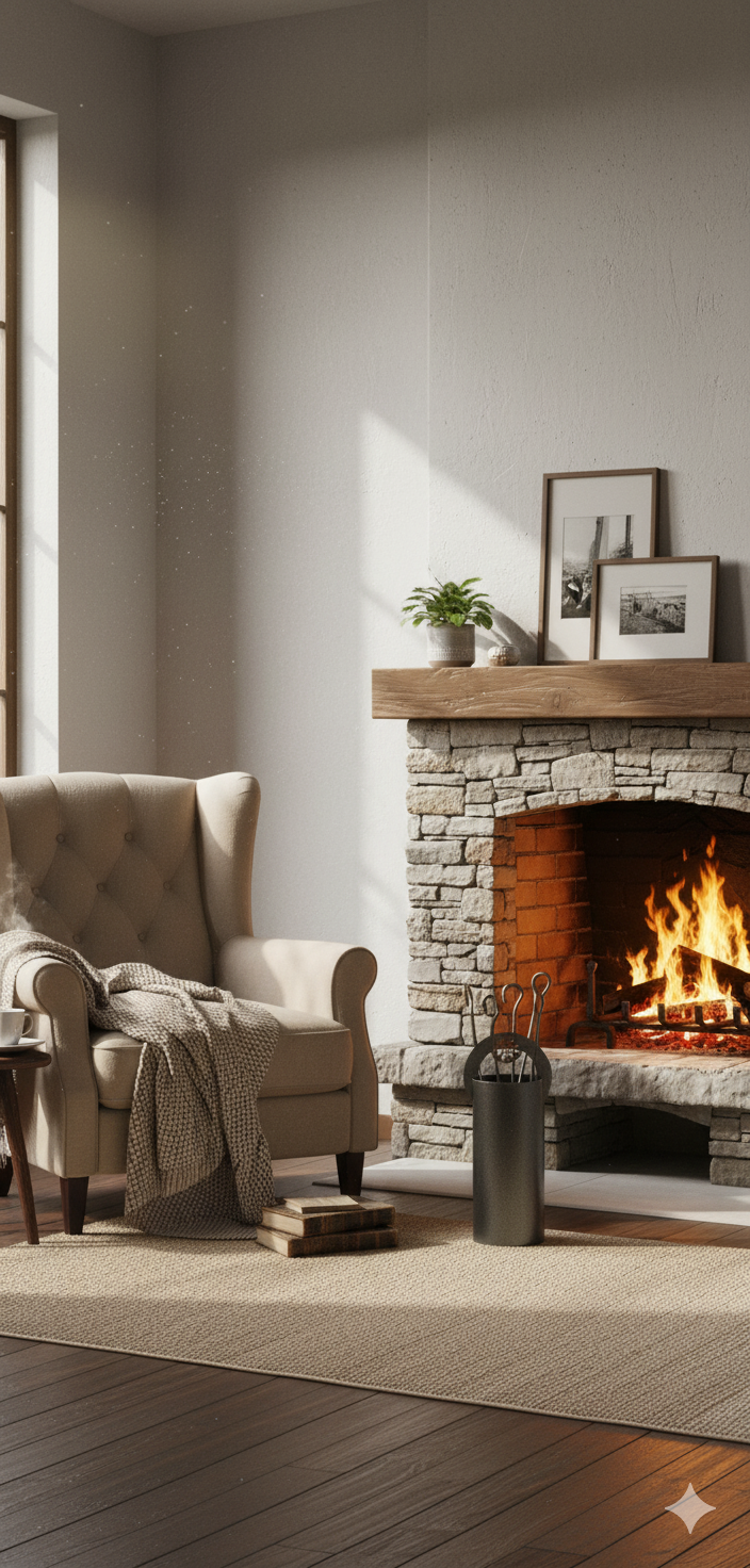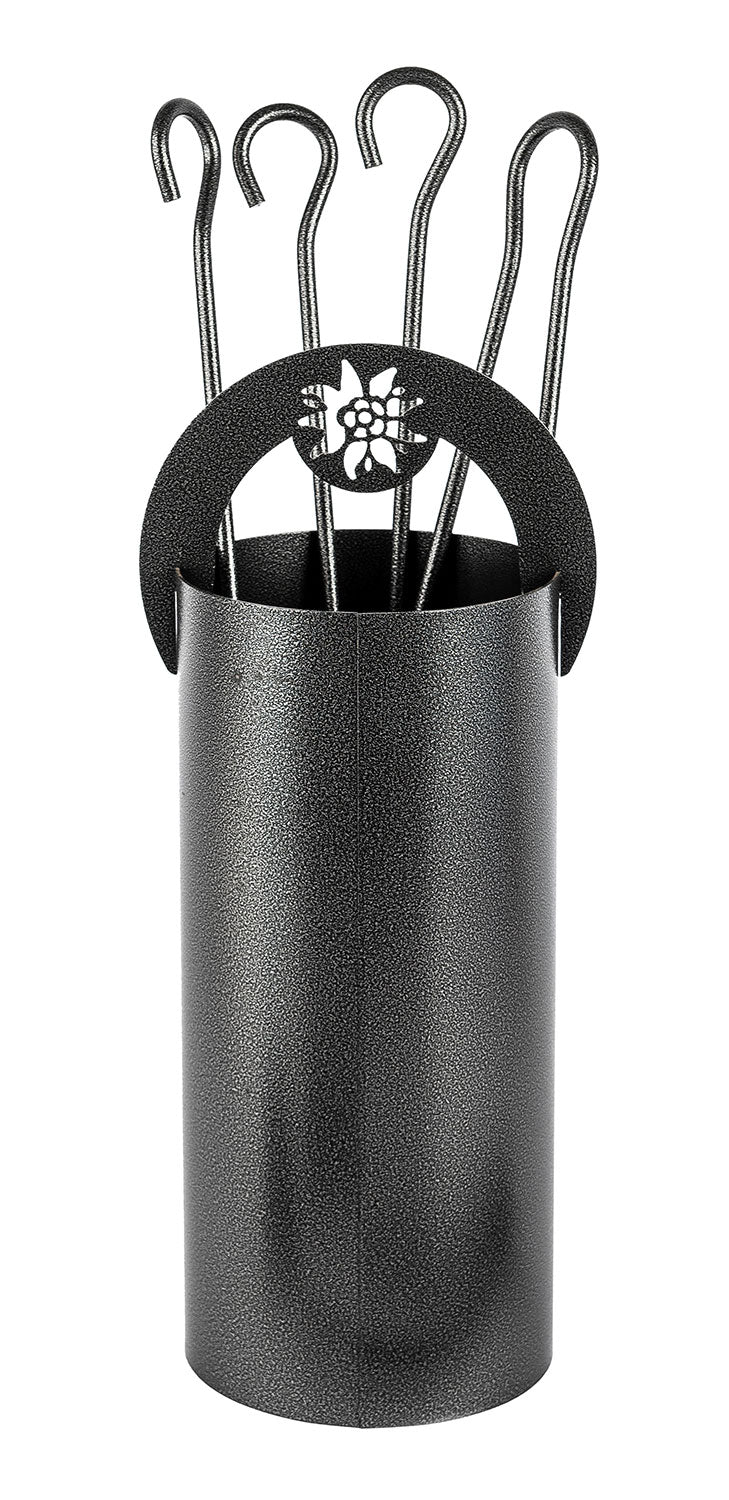 Trespolo per Attrezzi Camino Cilindrico Stella Alpina con Paletta Scopino Attizzino e Pinza Ø15,2x62 cm in Ferro Verniciato Grigio Martellato - La Ferrotecnica