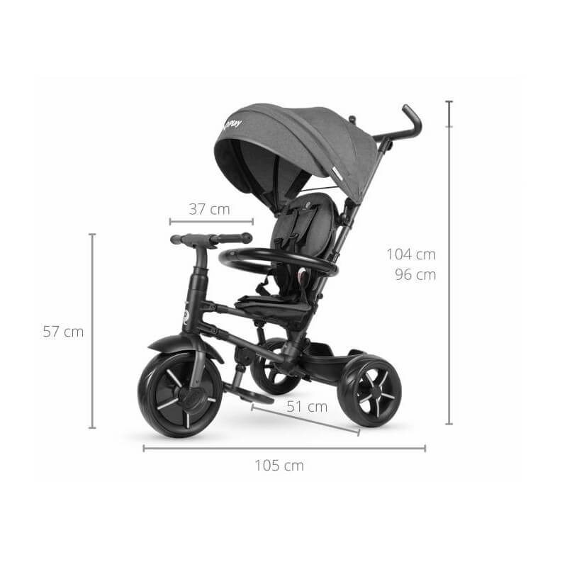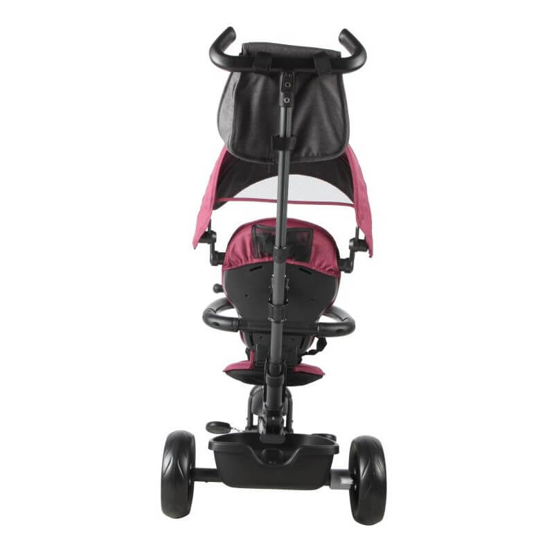 - Ruota anteriore dotata di sistema a ruota libera per evitare l'intrappolamento dei piedi del bambino quando si spinge il triciclo, doppio freno sulle ruote posteriori