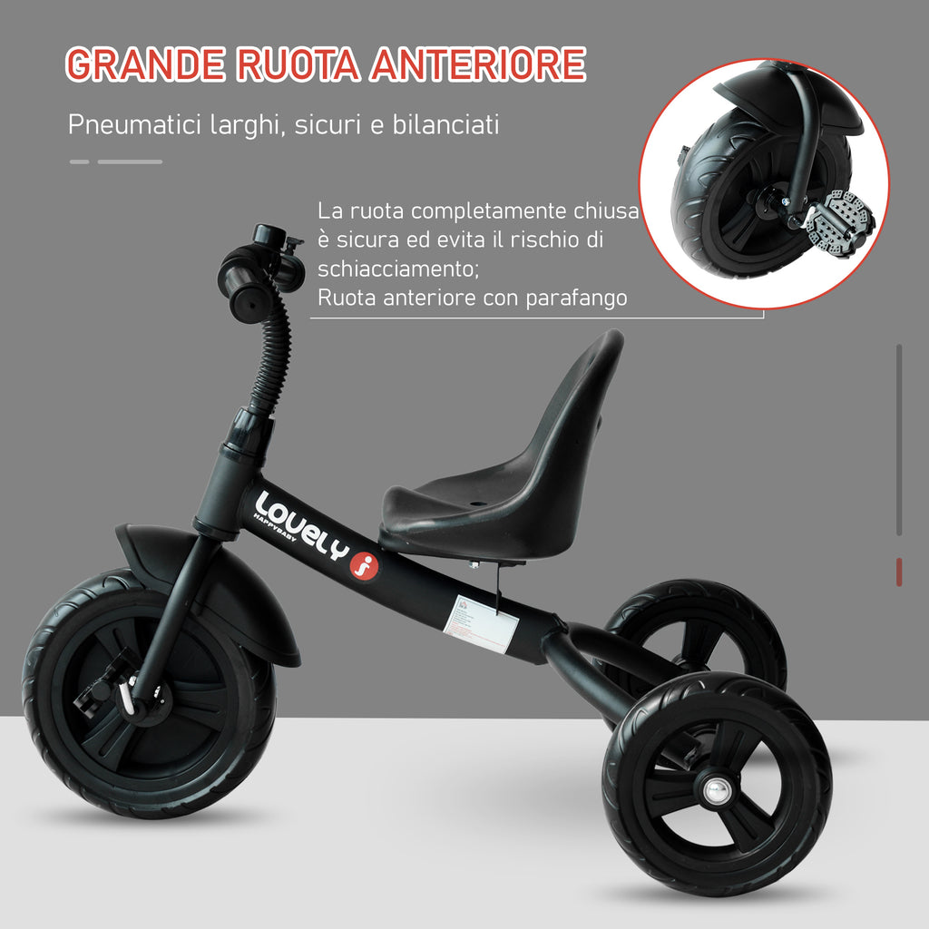 Triciclo per Bambini in Metallo Campanello Parafango Ruota Speciale Nero