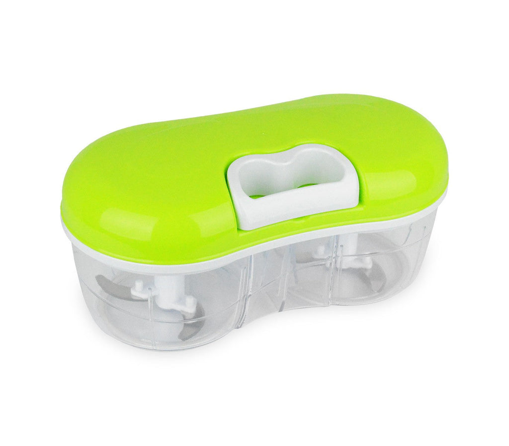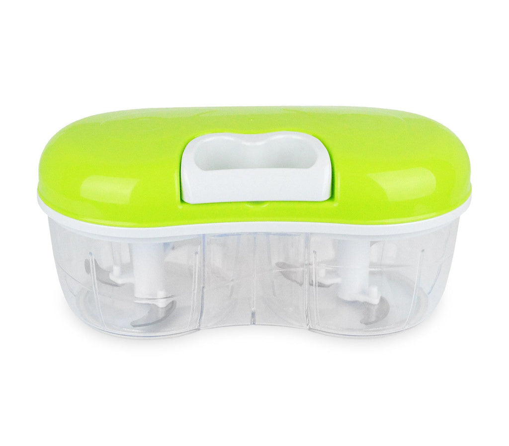 Un rivoluzionario accessorio, compagno ideale, per la tua cucina! Affetta, trita,mixa e monta la panna in tempo record. Dotato di 2 lame affilate in acciaio con rotazione automatica che ti permetteranno di tritare tutti i tipi di verdure, frutta, uova, cipolle, aglio, cetrioli, carote e moltro altro! Ideale per preparare ottime insalate e spuntini per i più piccoli. Facilissimo da utilizare, basta infatti inserire gli ingredienti da tritare e tirare la maniglia collegata sul coperchio per azionare il movimento delle lame. Più veloce e facile rispetto all'utilizzo di un coltello qualsiasi, in un unico movimento taglierete tutti gli ingredienti assieme. Facile da pulire. Grazie ai due contenitori separati potrai tritare contemporaneamente diversi alimenti senza che si mischino tra loro.