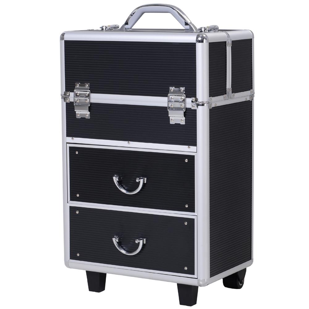 Tieni i tuoi trucchi sempre in ordine con questo trolley da trucco professionale . Perfetto se sei un artista, un make-up artist o un parrucchiere, ti mette a disposizione vassoi estraibili nella parte superiore, e due ampi cassetti in quella inferiore che puoi organizzare a tuo piacimento usando gli appositi divisori rivestiti in feltro. Parti per la tua prossima trasferta di lavoro, e porta con te tutto il materiale di cui hai bisogno con questa valigetta professionale!
