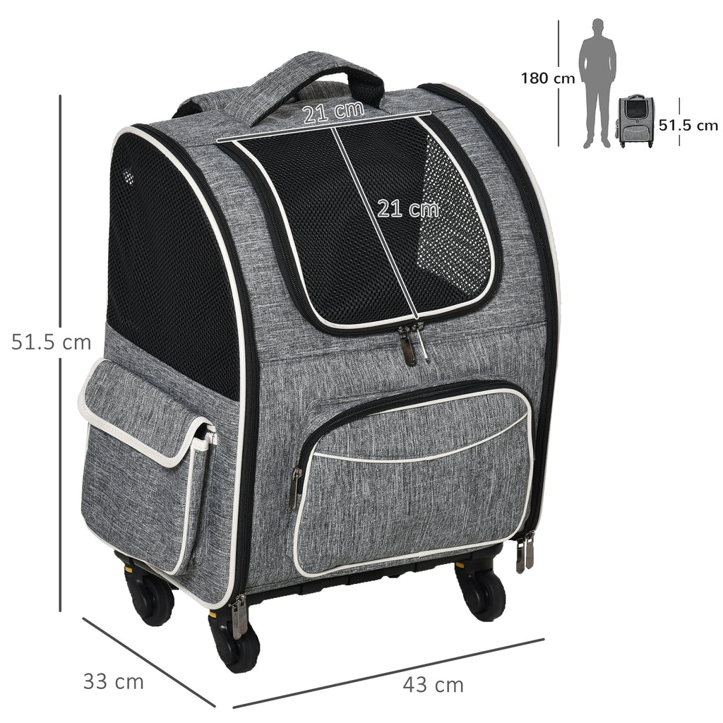 Trolley Zaino Trasportino per Cani e Gatti 43x33x51,5 cm in Tessuto Oxford e Poliestere Grigio e Nero