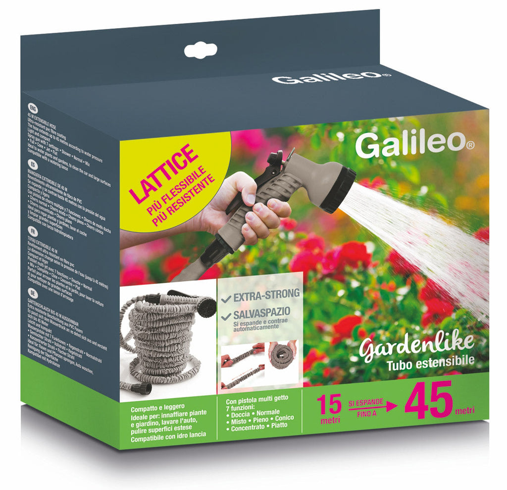 Caratteristiche Tecniche Tubo Pompa Canna dell'Acqua Estensibile 45 mt con Pistola Soriani Gardenlike Grigio