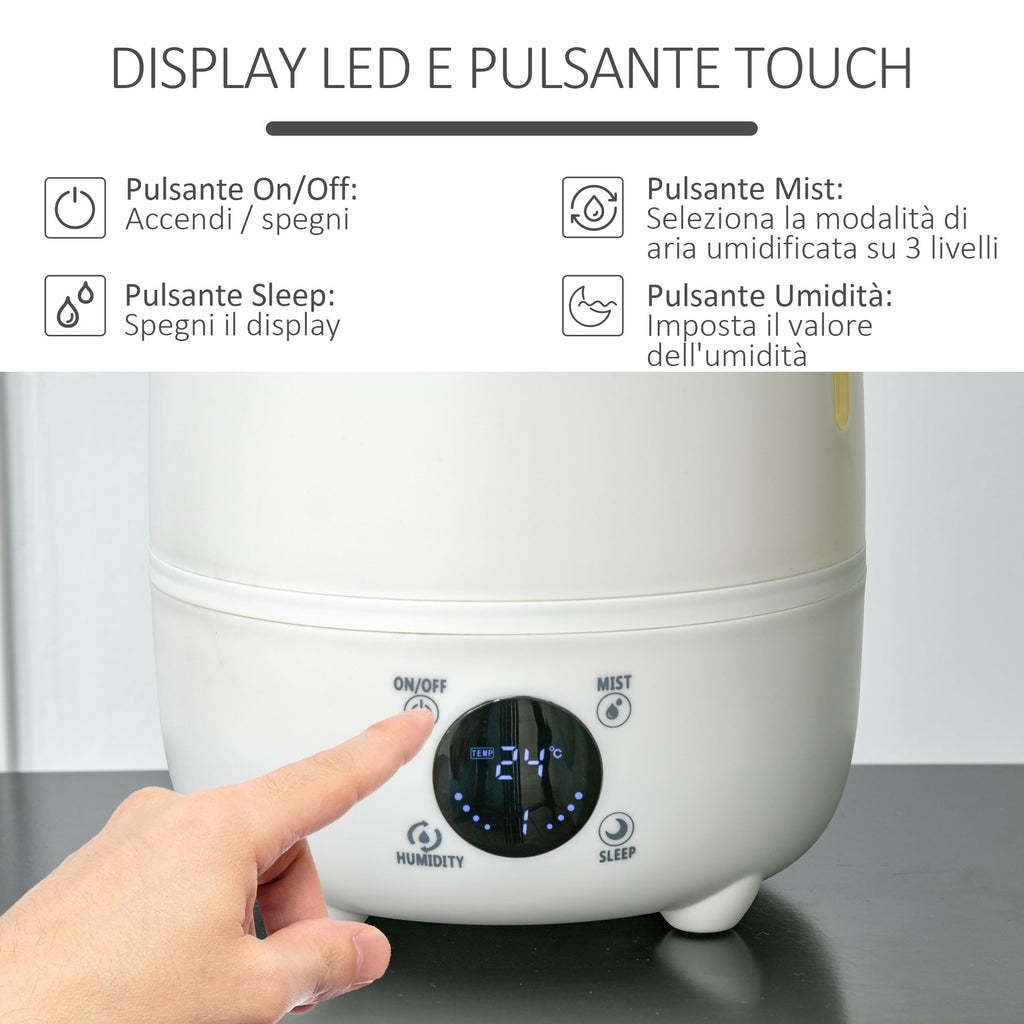 - 3 MODALITÀ REGOLABILI: Usa il pulsante touch per regolare l'erogazione dell'aria umidificata