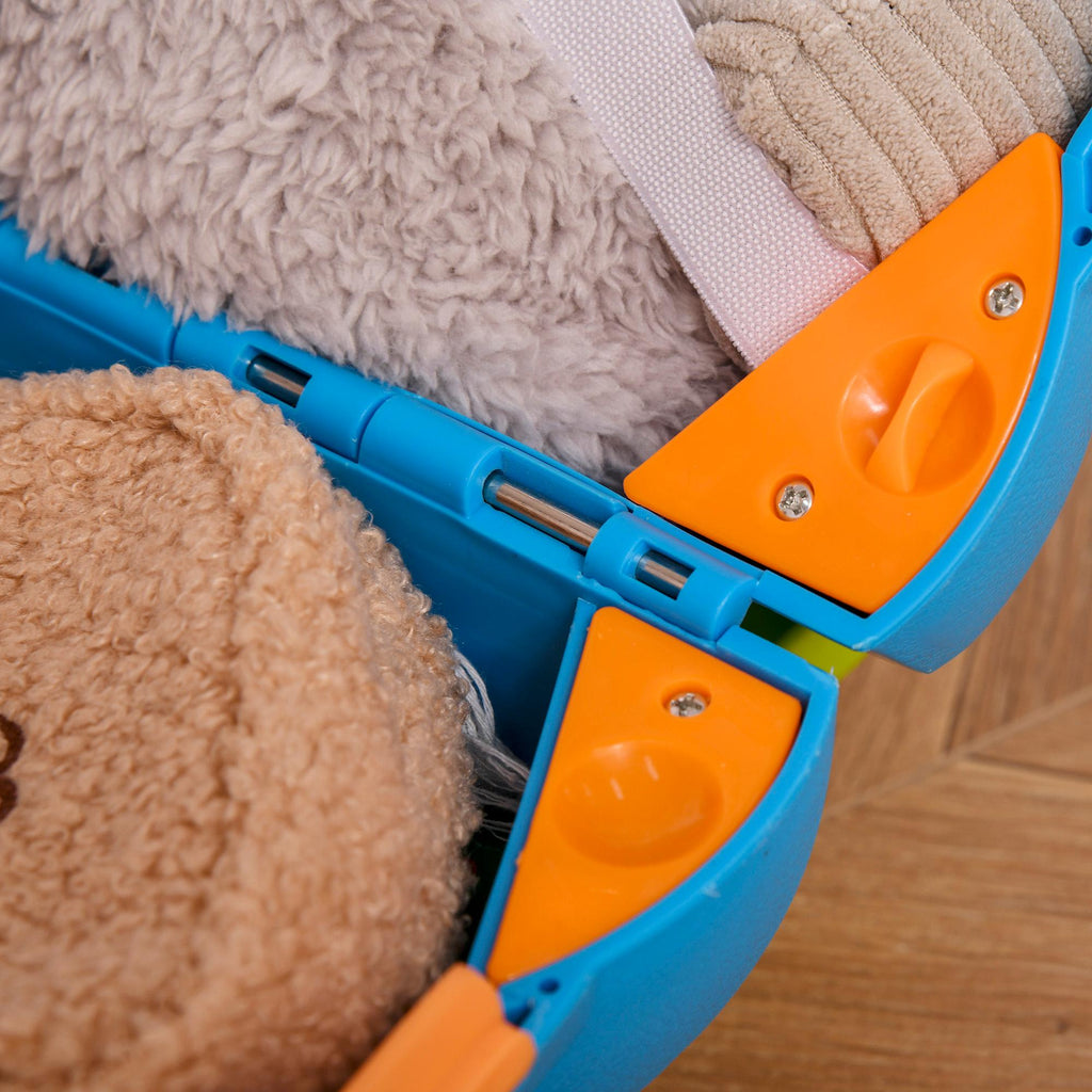 Pronti per partire insieme a mamma, papà...e al suo nuovo compagno di viaggio? Sì, parliamo proprio della sua nuova valigia cavalcabile ! Colorata e divertente, ha 4 ruote e delle cinghie per trascinarla comodamente come un vero trolley. Lo spazio interno è capiente e puoi usarlo per portare in vacanza costumini, ciabattine, vestiti e, ovviamente, i suoi giocattoli preferiti.