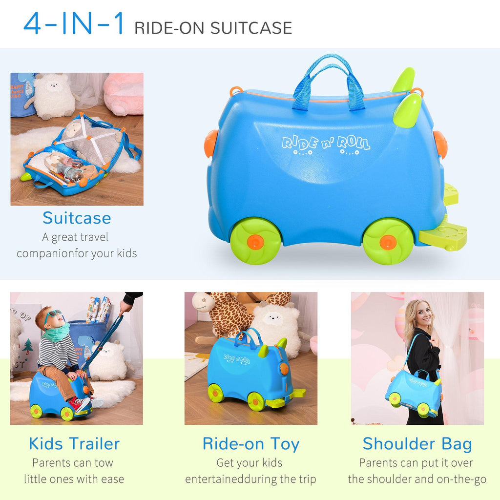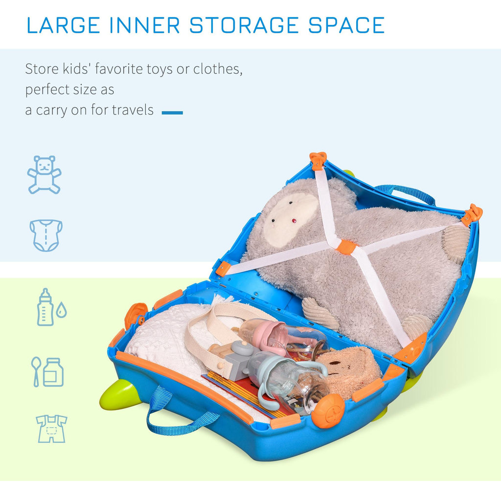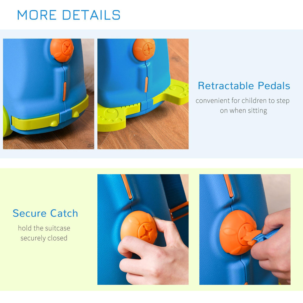 Valigia Trolley Bagaglio a Mano Cavalcabile per Bambini 4 Ruote Azzurra