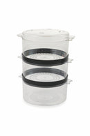 Carne, pesce, uova, verdure, riso: sarà possibile cucinare contemporaneamente anche alimenti di diverso tipo all'interno dei 3 cestelli impilabili e dotati di manici.