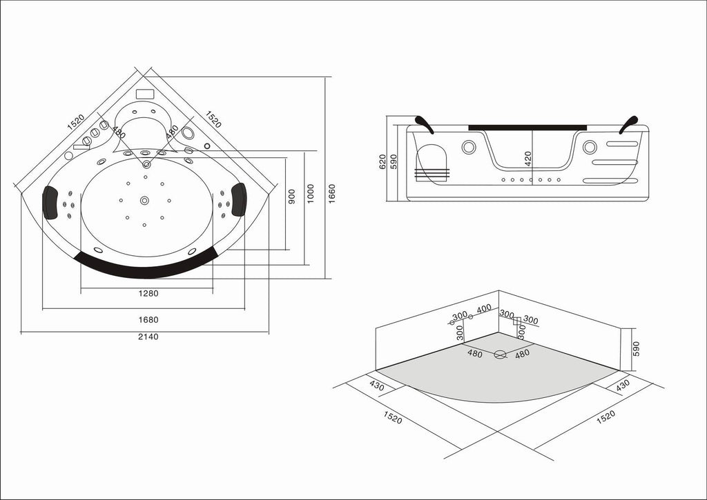 - Dimensioni della vasca: 152 x 152 cm