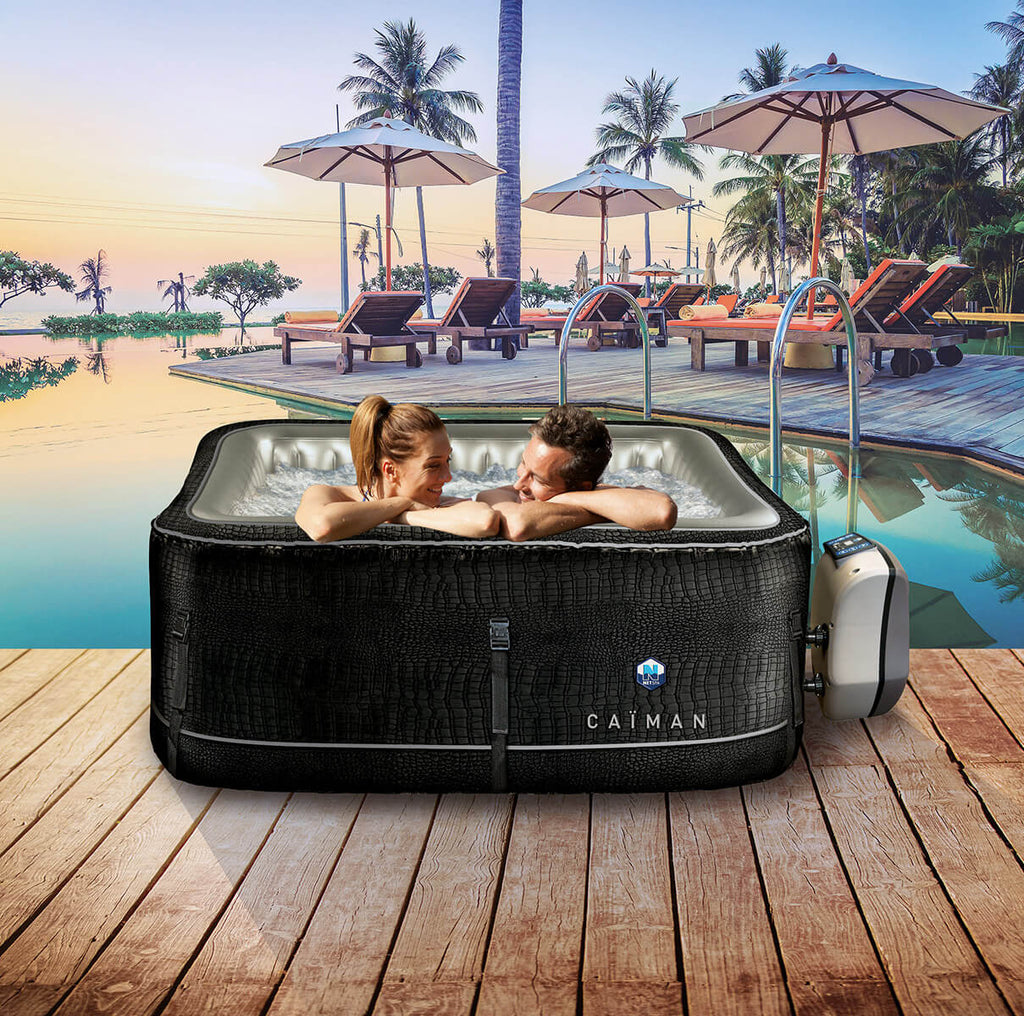 La spa gonfiabile Caïman di forma quadrata è compatta ed elegante, ideale per 4 persone. Raffinato e robusto, l'Aspen ha un rivestimento esterno in PVC laminato ultra resistente in similpelle e un rivestimento interno perlato.