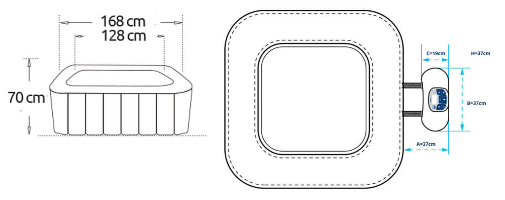 - Dimensioni esterne: L 168 cm x l 168 cm x H 70 cm