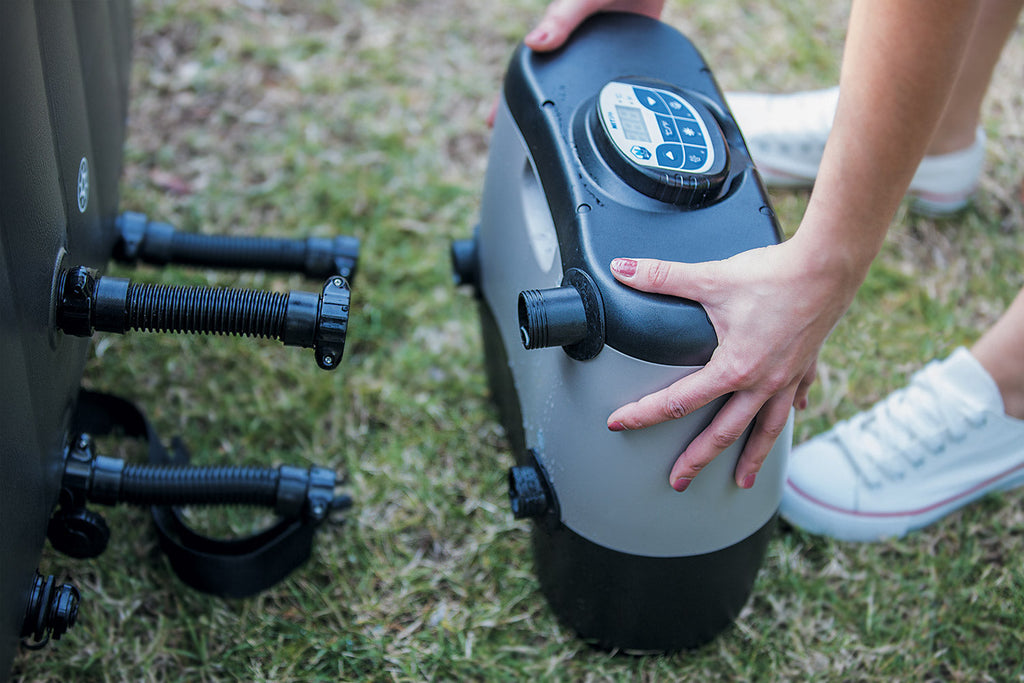 - Gli ugelli massaggianti dispersi a 360° abbinati ad un potente soffiatore da 650W assicurano l'omogenea e piacevole cura delle bolle di massaggio. L'unità motore riscalda rapidamente anche l'acqua della piscina fino a 42°C per godersi i piaceri della spa tutto l'anno!