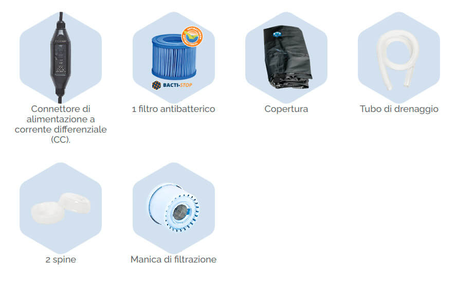 - Filtrazione: Gruppo blocco filtrante + 1 cartuccia antibatterica inclusa