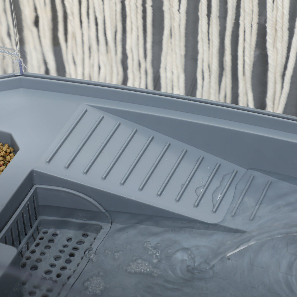 - PANNELLO RIALZATO: Il pannello laterale della vasca per tartarughe è alto 13 cm, impedendo al tuo piccolo animali di scappare