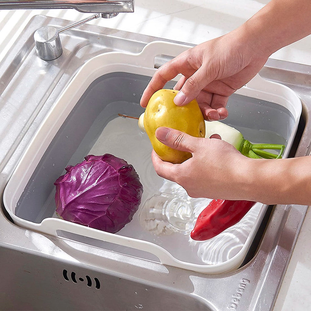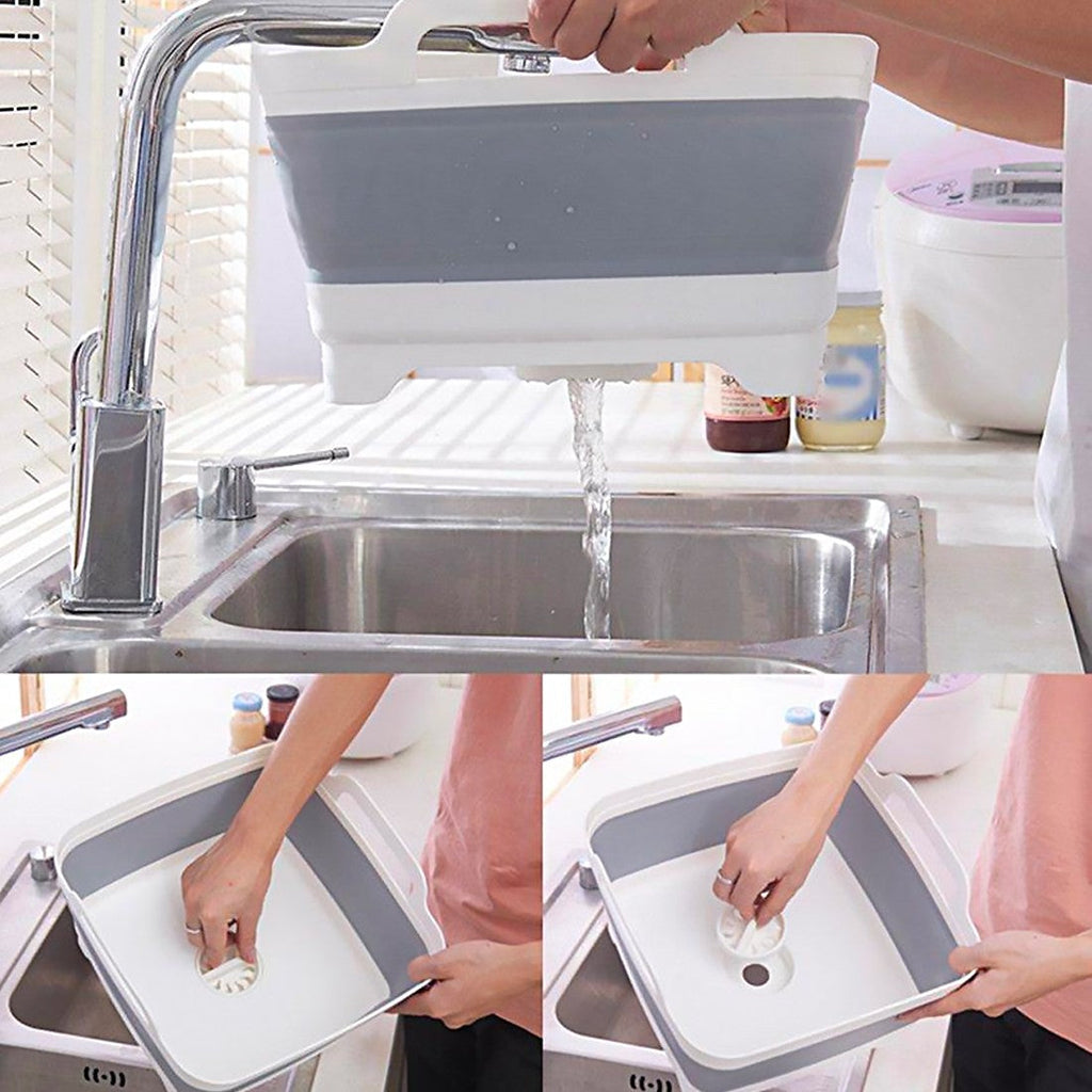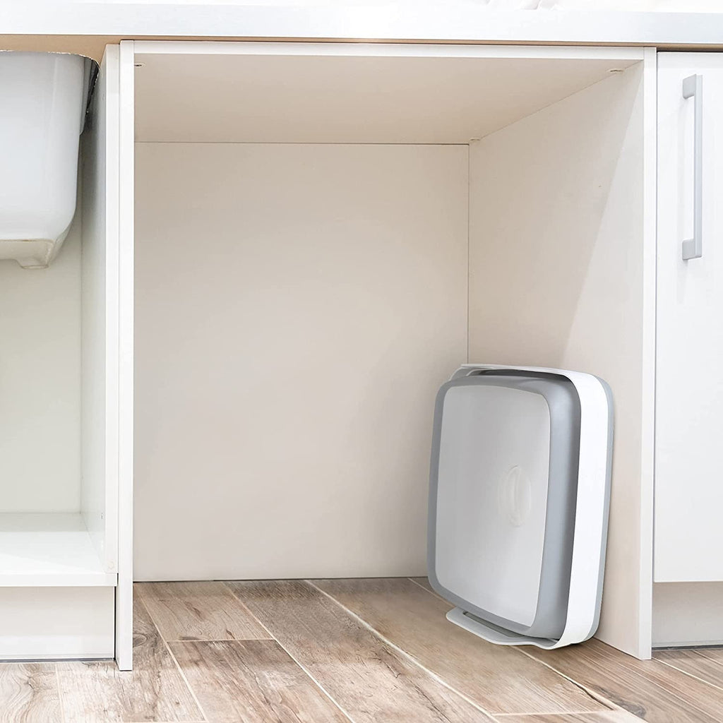 Vaschetta Bacinella Multiuso Pieghevole 30,5x30 cm 9 Litri con Tappo di Scarico in Silicone Grigio