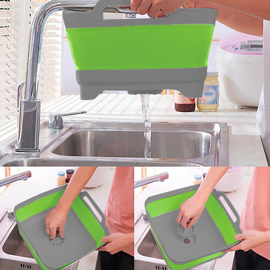 Vaschetta Bacinella Multiuso Pieghevole 30,5x30 cm 9 Litri con Tappo di Scarico in Silicone Verde