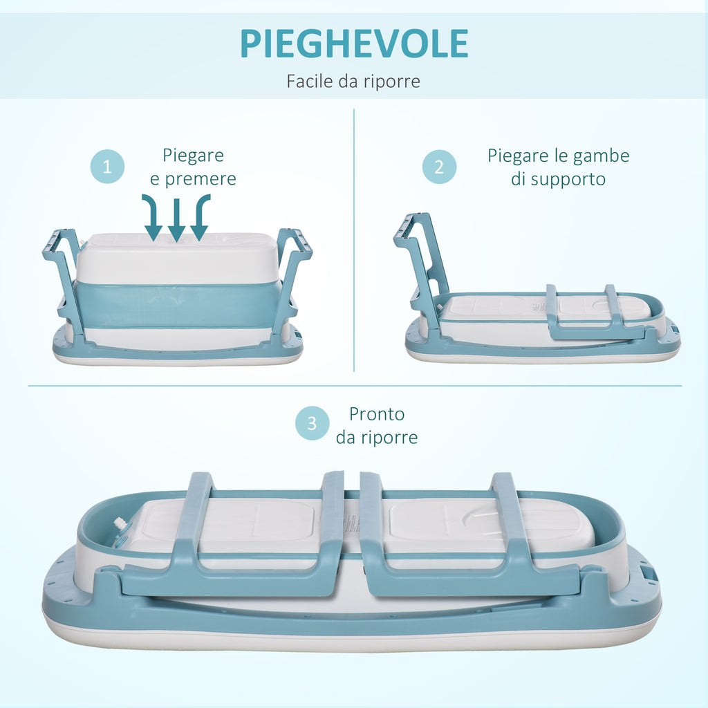 Vaschetta Bagnetto per Bambini 114x60,4x53 cm Antiscivolo Pieghevole Blu Bianco