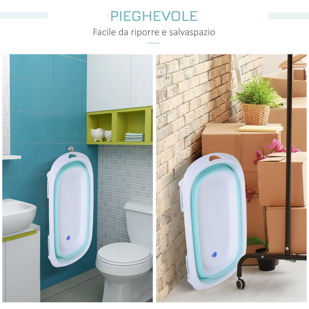 Vaschetta Bagnetto per Neonati Antiscivolo Pieghevole con Scarico Azzurro