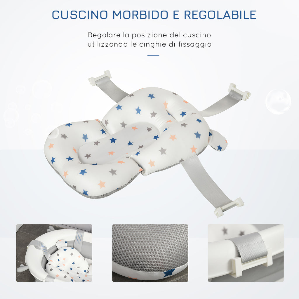- CUSCINETTO REGOLABILE: Il cuscino del bagnetto è dotato di una cinghia per regolare la posizione. È morbido, confortevole e si asciuga velocemente