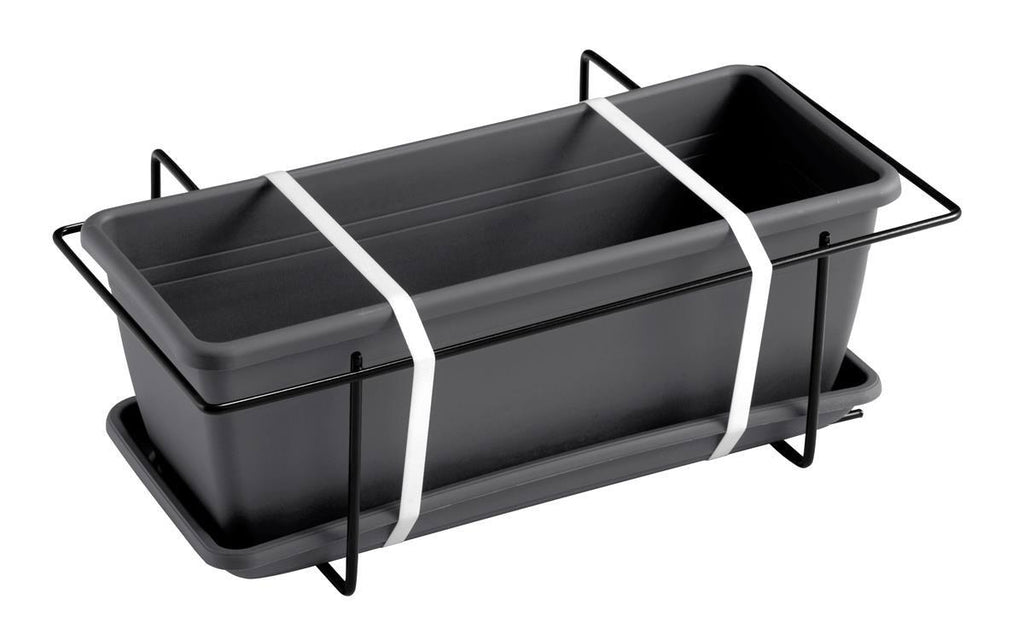 Vaso 60x17x14,5 cm in Polipropilene con Supporto Kit Cassetta Mare 60 Antracite
