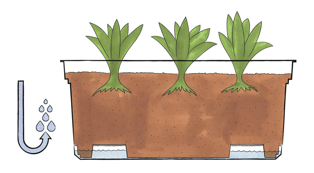 La fioriera Aqua è munita di sottovaso e la conformazione della base interna del vaso crea una riserva d'H2O che permette alle vs piante di regolare la loro crescita per mezzo dell'osmosi, andando a captare l'umidità alla base del vaso (la riserva d'H2O)e permettere una crescita ottimale delle stesse piante.
