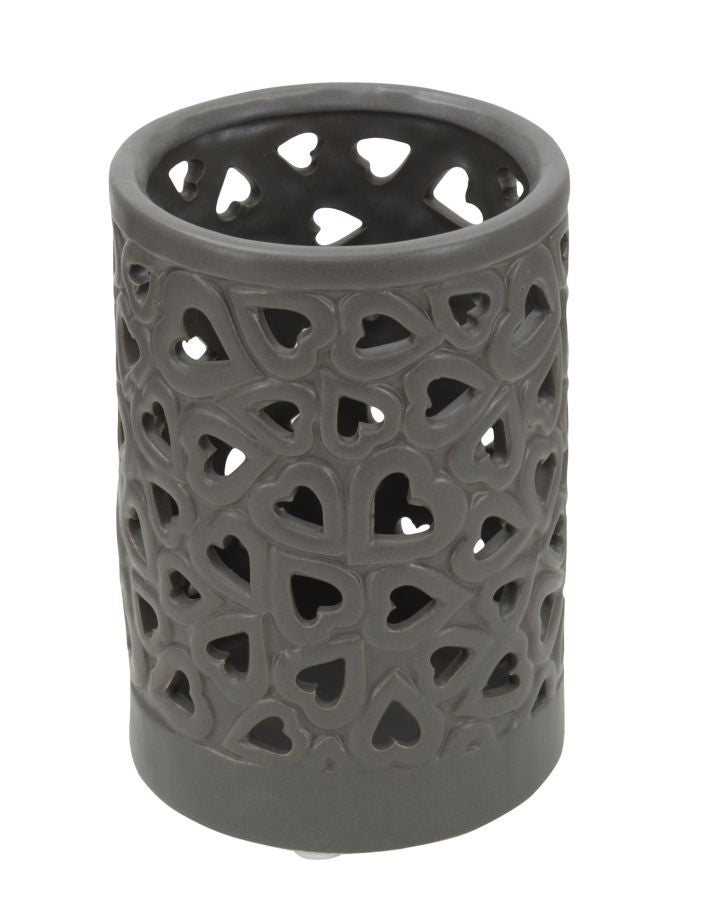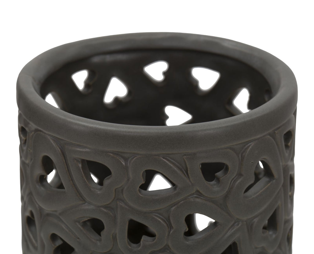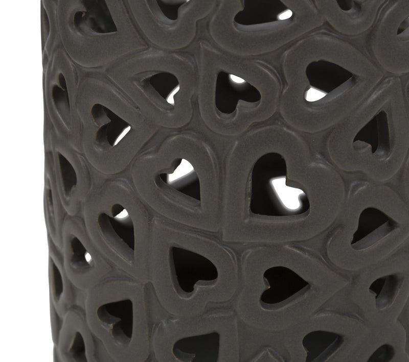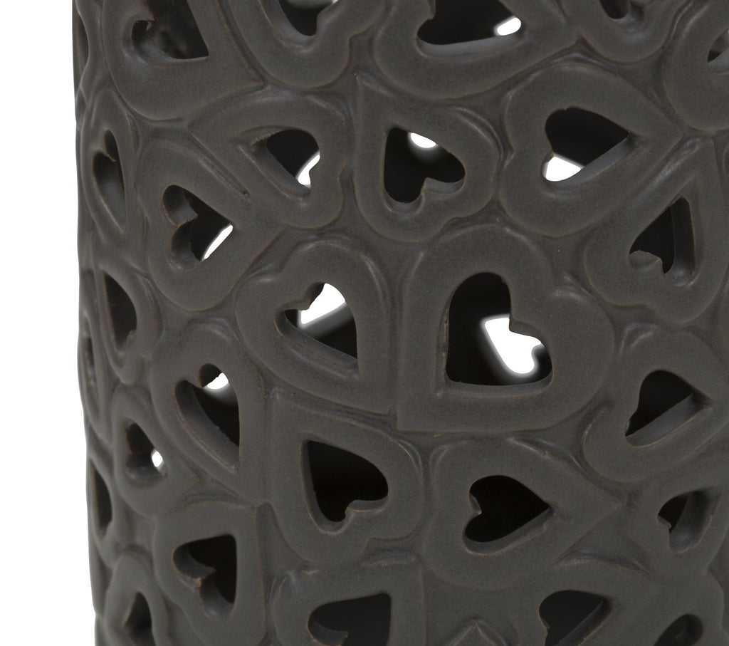 Vaso in porcellana grigio tortora con intarsi cuori. La porcellana si avvolge in linee sinuose e accattivanti per incorniciare i fiori più belli. Vasi che diventano veri e propri oggetti di design da collezionare.