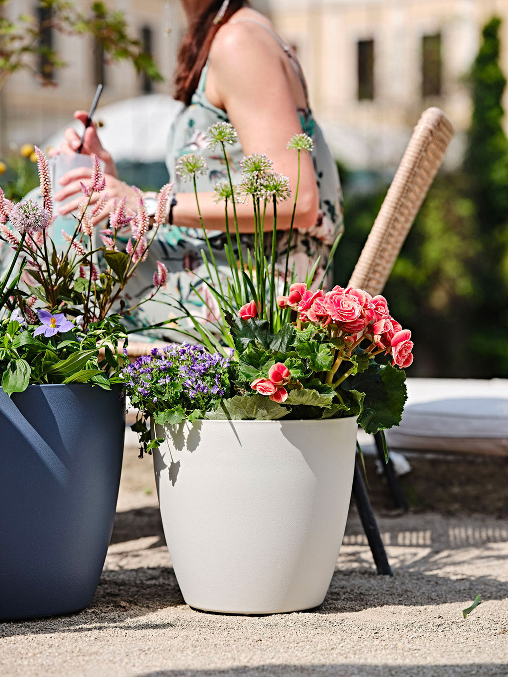 - Già abbinato con sottovaso che raccoglie l'acqua di irrgazione in eccesso lasciandola a disposizione della pianta nel sottovaso, permettendo così un'irrigazione più duratura