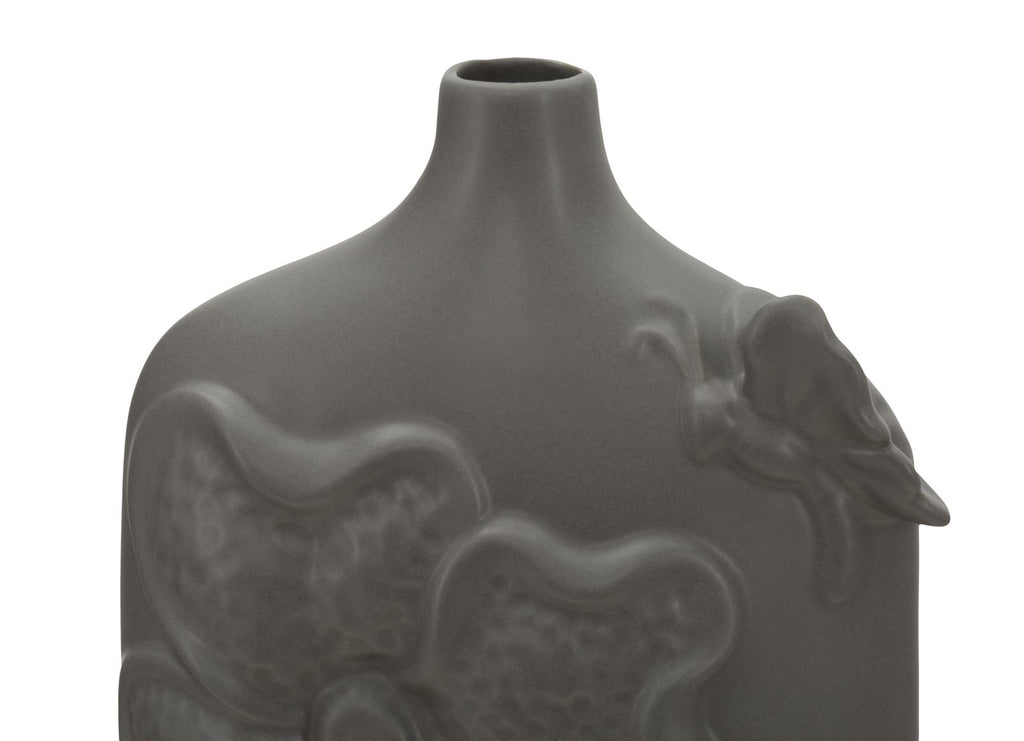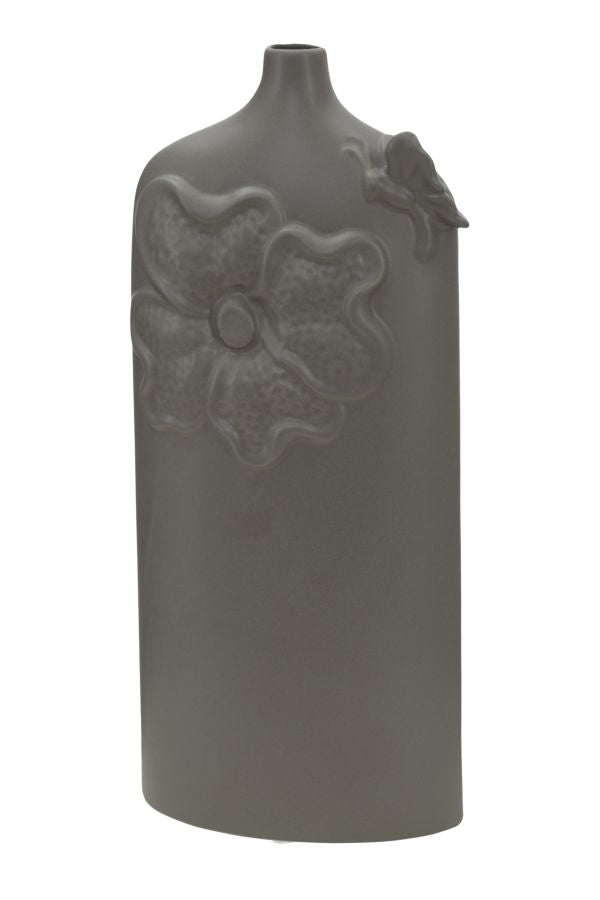 Vaso in porcellana grigio tortora con decori floreali. La porcellana si avvolge in linee sinuose e accattivanti per incorniciare i fiori più belli.Vasi che diventano veri e propri oggetti di design da collezionare.