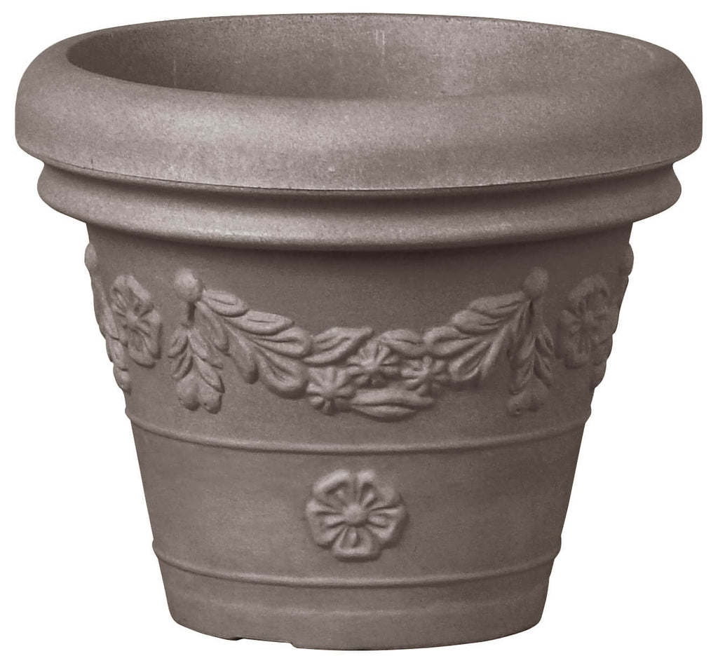 Il vaso Festonato Classic è un vaso dallo stile classico ed elegante, realizzato in resina plastica rinforzata ed è prodotto in tecnologia rotazionale (rotostampaggio) che garantisce elevata resistenza e solidità permettendo di realizzare prodotti leggeri anche nelle dimensioni più grandi. La finitura opaca e leggermente striata dona al vaso un aspetto ultra reale molto simile alla terracotta e ai materiali naturali. Si lava facilmente senza detersivi, resiste agli urti ed è 100% atossico e riciclabile. Il vaso Festonato Classic ha un punto di agevolazione (foro predisposto) per l'eventuale foratura per permettere il drenaggio dell'acqua. Questo vaso è utilizzabile senza problemi come vaso da terrazzo o da giardino in quanto è resistente ai raggi U.V. e quindi inalterabile nel colore. Il vaso resiste senza problemi al caldo ed al freddo da temperature di -30°C a +60°C.