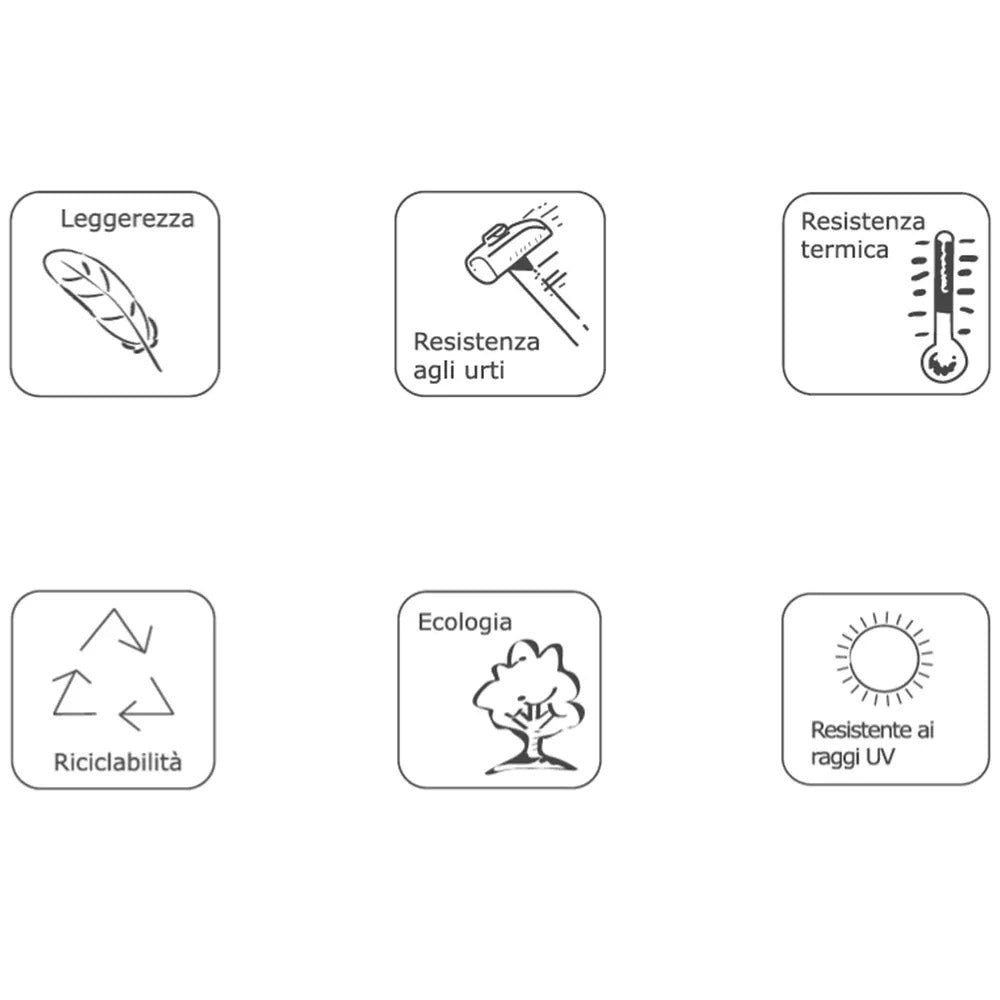 - Resistente agli agenti atmosferici e ai raggi UV