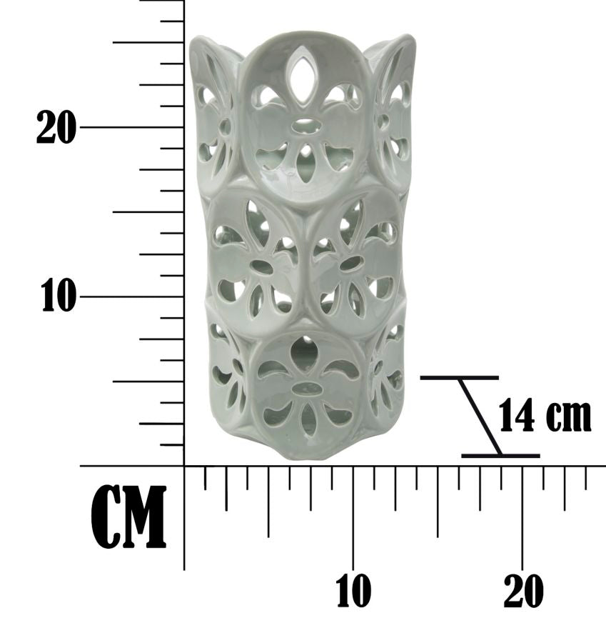 Vaso in porcellana grigia con intarsi floreali. Portafiori dalle linee eleganti e contemporanee