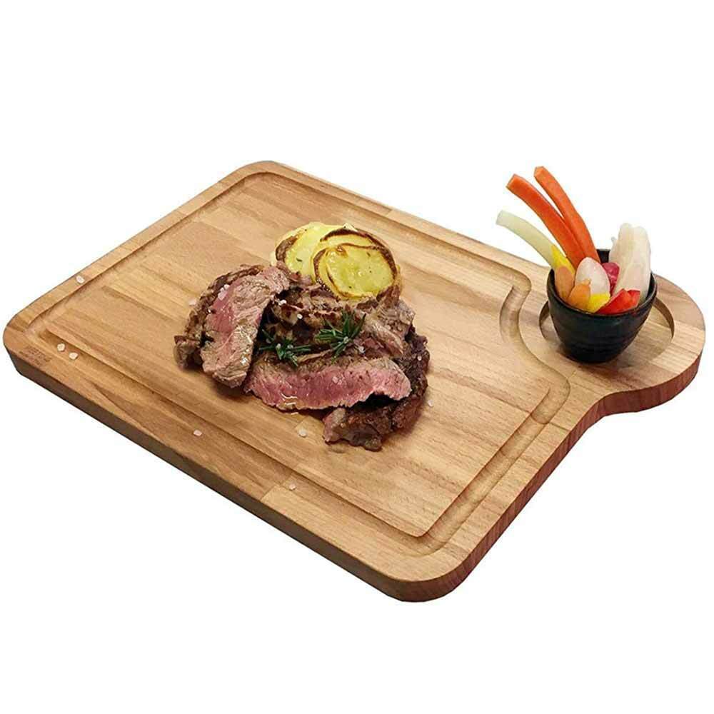 Vassoio Piatto Tagliete da Portata 45x30cm in Legno di Faggio con Porta Salse