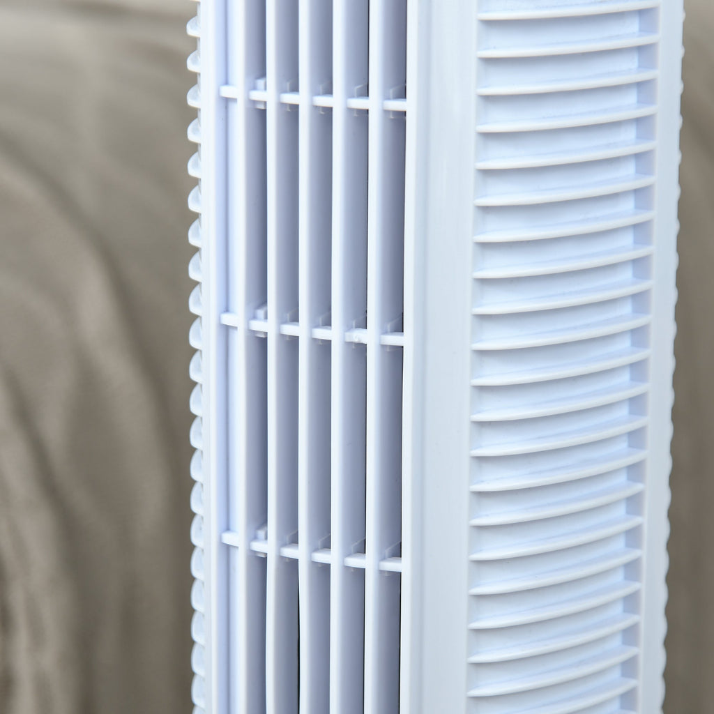 Non temere il caldo estivo grazie a questo ventilatore a colonna. È facile da usare ed è dotato di 3 velocità e 3 funzioni, per offrirti una ventilazione personalizzata secondo le tue esigenze. La funzione di oscillazione permette di diffondere meglio l'aria in ogni stanza e grazie al timer da 7.5 ore puoi programmare il ventilatore a torre per tenerti al fresco durante la notte e spegnersi da solo. Il pannello LED e il telecomando ti permettono di regolare facilmente tutte le funzioni del ventilatore e la base stabile garantisce la massima sicurezza di utilizzo.