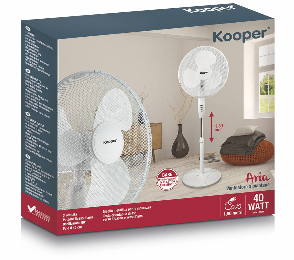 Ventilatore a Piantana 40cm Oscillante 3 Velocità 40W Kooper Aria