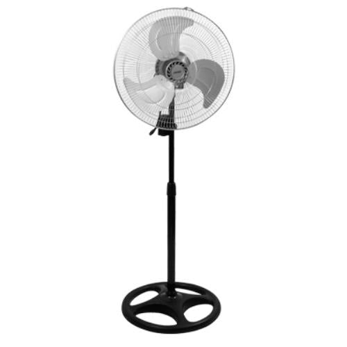 Ventilatore a piantana 3 pale in alluminio satinato e griglia di protezione in acciaio. Pannello di controllo con 3 velocità di ventilazione. Funzione oscillazione e regolazione d'inclinazione della testa. Il motore è a risparmio energetico, ad alta velocità per la massima circolazione dell'aria. Piantana cromata solida e con protezione al calore per prevenire il surriscaldamento del motore.