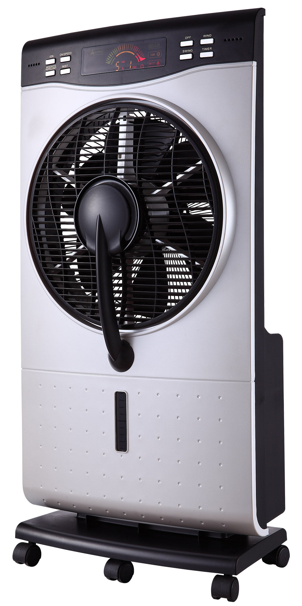Ventilatori domestici raffrescanti con nebulizzatore d'acqua ad ultrasuoni. Umidificatore con ionizzatore per depurare l'aria, dotato di piastrina repellente zanzare.