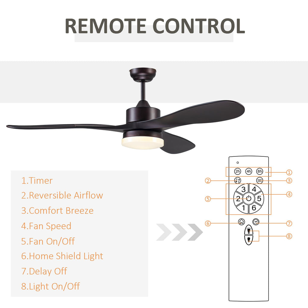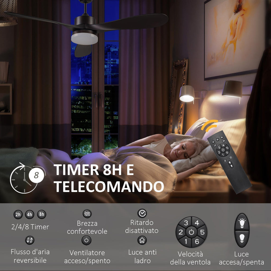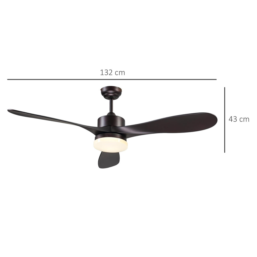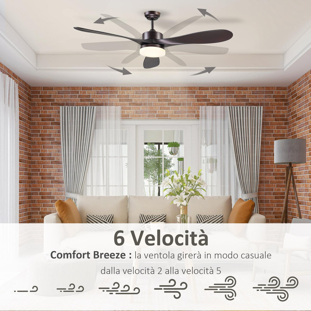 Ventilatore da Soffitto 3 Pale e Lampada LED Ø132x43 cm 6 Velocità Marrone
