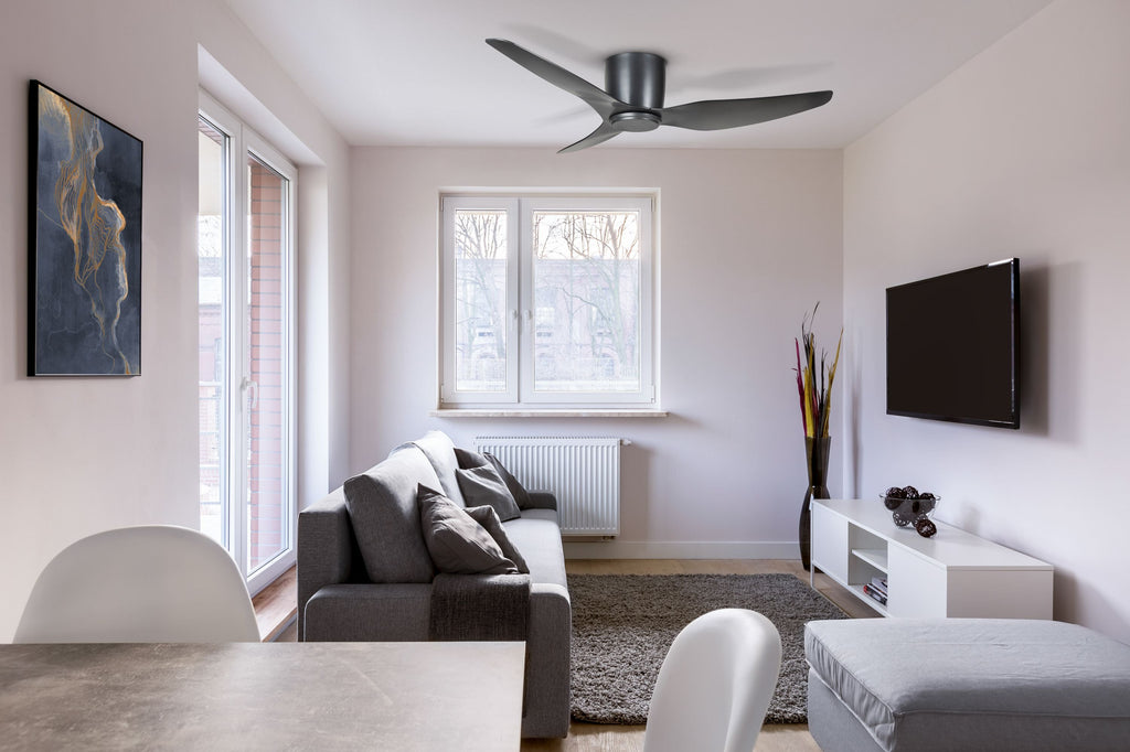 - Ventilatore nero 3 pale Flush LED 15W Ventilatore con rotazione reversibile utilizzabile sia in estate che inverno per abbattere il calore che si accumula in alto
