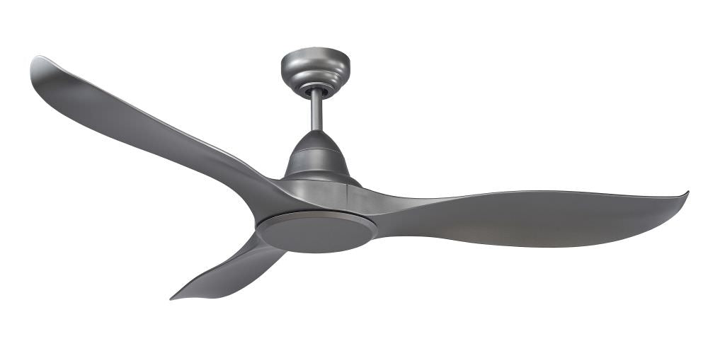 Il ventilatore da soffitto colore titanio satinato, senza luce modello Wave è dotato di un potente ed efficiente motore a corrente continua che utilizza fino al 70% di energia in meno rispetto a un motore CA standard. Diametro 132 cm, Questo ventilatore da soffitto incorpora anche tre pale in ABS, progettate per generare un maggiore flusso d'aria.