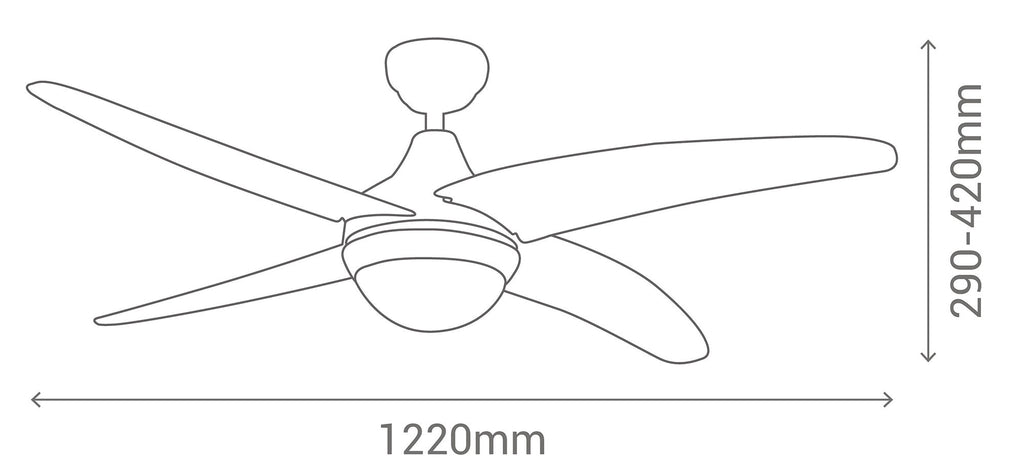 Elegante ventilatore da soffitto con doppia luce, lampadine non incluse, max 40W con attacco E27. Telecomando incluso 3 velocità con timer spegnimento fino a 8 ore. Corpo in acciaio e 4 pale in plywood. Funzione estate inverno, possibilità di essere posizionato su soali con inclinazione massima di 14 gradi.