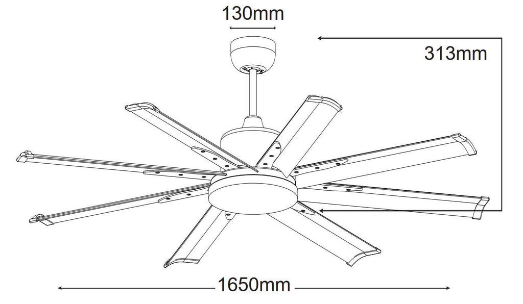 L'Albatross può essere invertito per l'uso estivo e invernale, ogni pala viene bilanciata in fabbrica e il motore DC di alta qualità si traduce in un ventilatore basso consumo che funziona in modo efficiente e silenzioso. Luogo di installazione solo per interni.