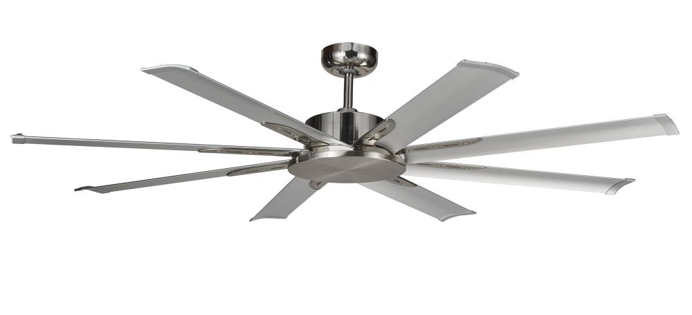 - Ventilatore da soffitto in alluminio con 8 pale di colore Silver Silver diametro 165 cm perfetto ambienti da 25 a 35 metri quadri