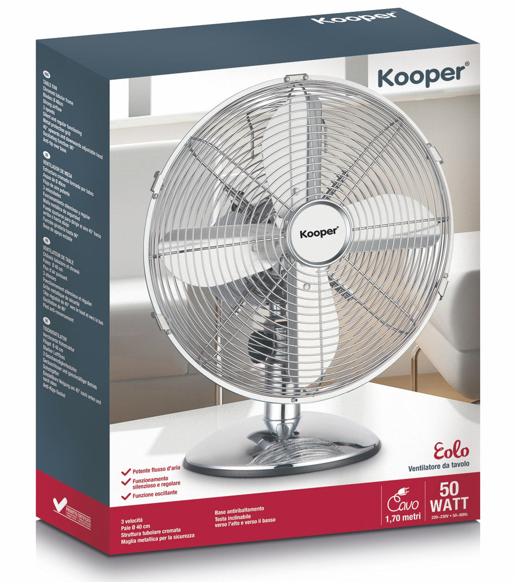 Ventilatore da Tavolo 40cm Oscillante 3 Velocità 50W Kooper Eolo
